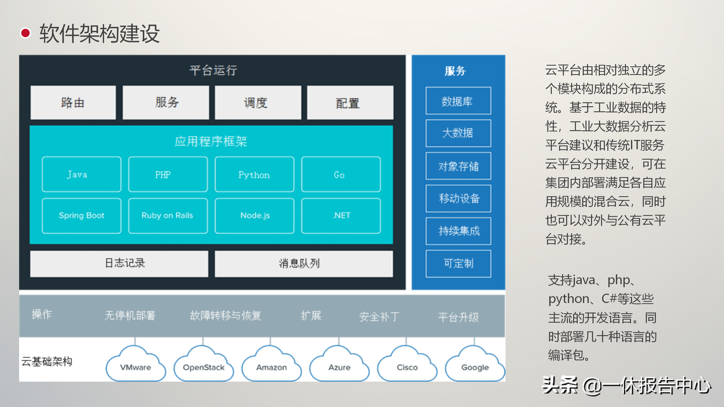 已有的智慧园区规划中,也多为物理架构或技 术架构设计,容易脱离实际业务需求,以碎片 化建设为主,系统性轻量化、集中化、共享化考虑不足 。