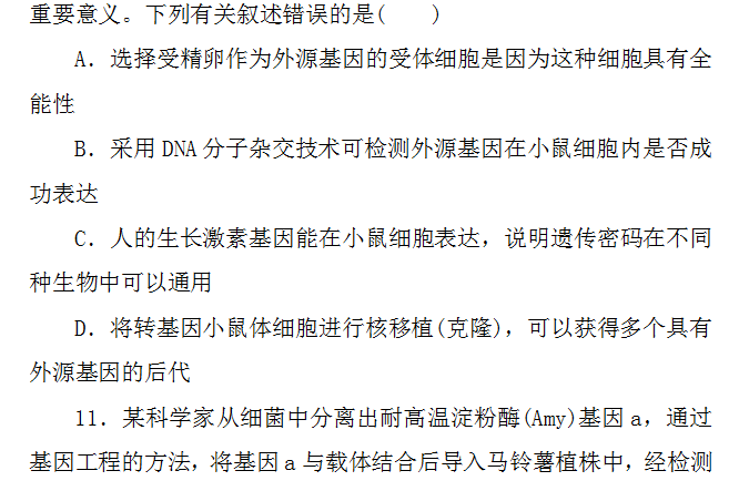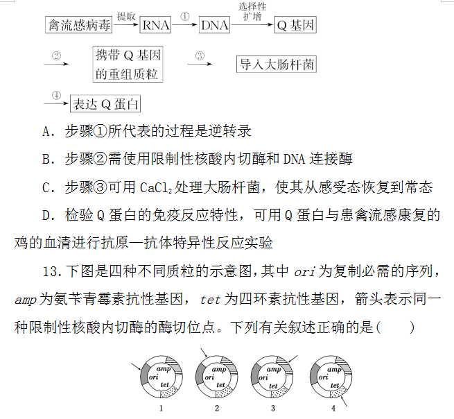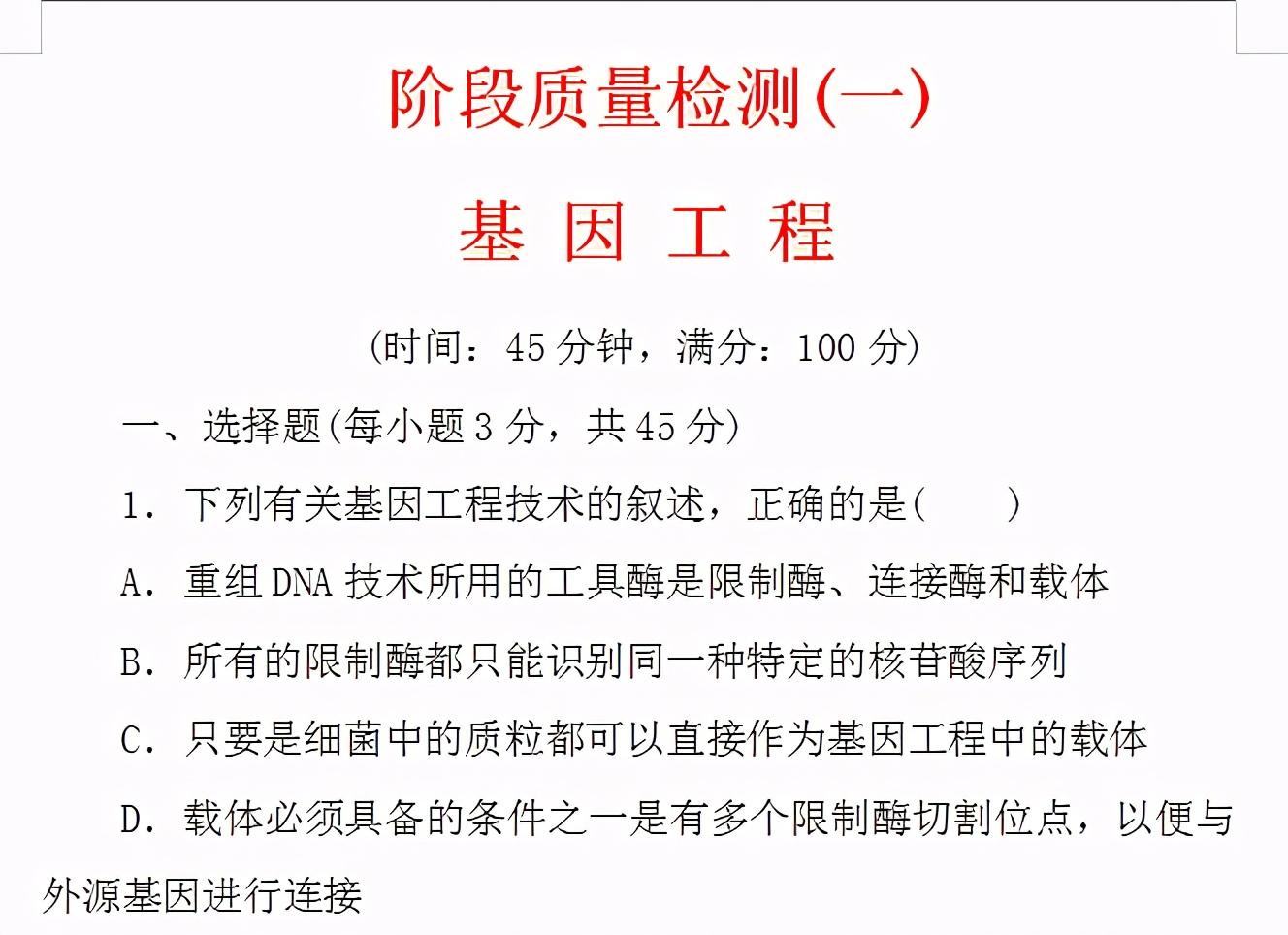 「敲重点」高中生物基因工程试题,选修部分也得练