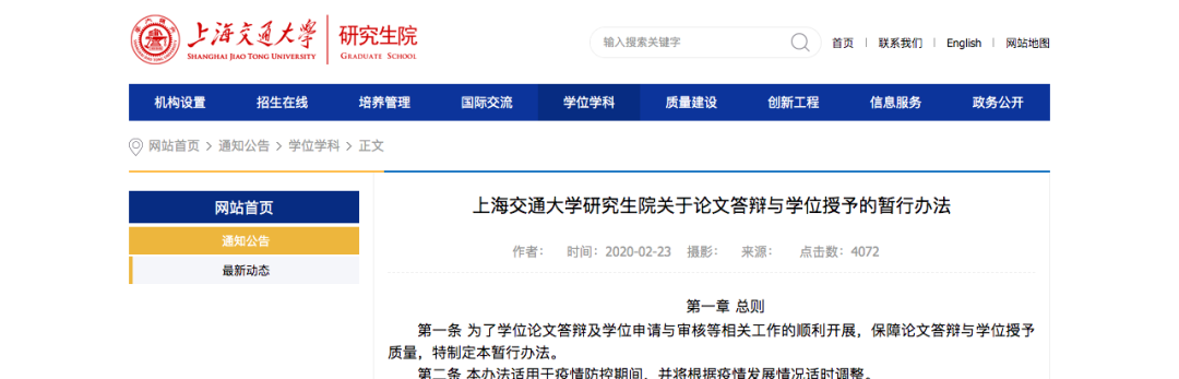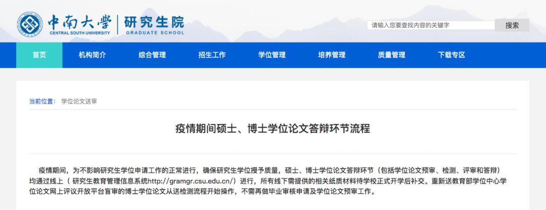 疫情期间,为不影响研究生学位申请工作的正常进行,确保研究生学位授予质量,硕士、博士学位论文答辩环节(包括学位论文预审、检测、评审和答辩)均通过线上进行,所有线下需提供的相关纸质材料待学校正式开学后补交。