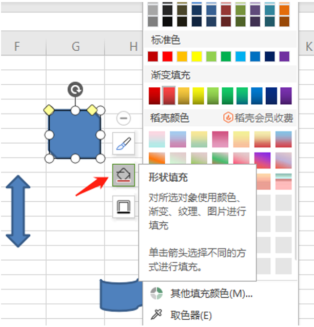 我们可以点击图片,选择右下角的小桶,可以对图形进行填充成不同的颜色: