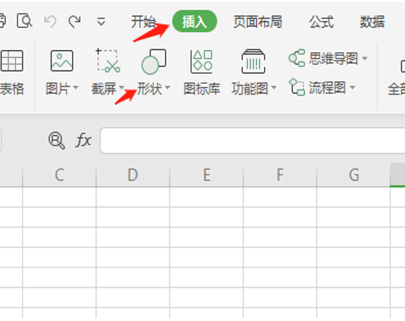 首先我们打开一个表格,选择【插入】,点击【形状】,操作如下图: