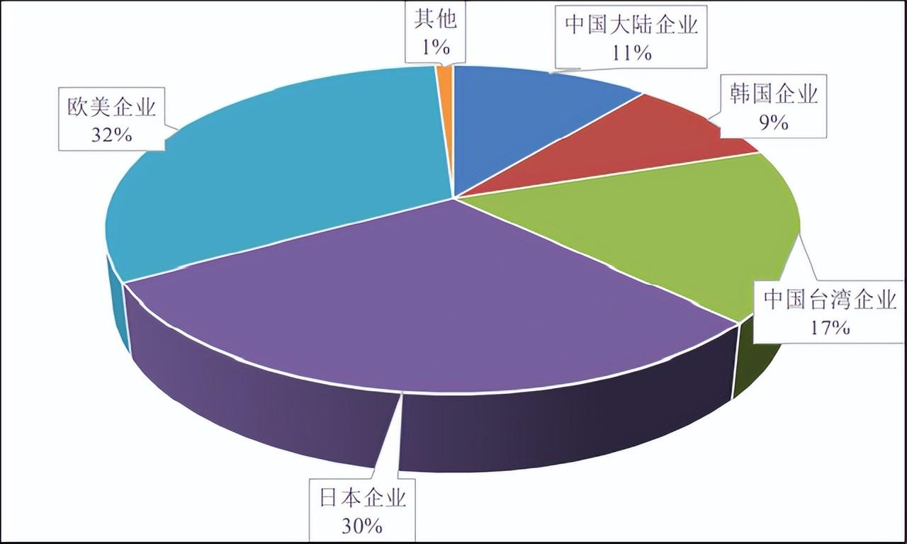 市场其余部分可归为第三块市场份额,主要是中国台湾、韩国、中国大陆本土企业(即内资/合资企业)所占领,约占全球市场总量的37%。余下1%的市场份额由其它国家、地区(主要指亚洲其它国家、地区的企业)所有。