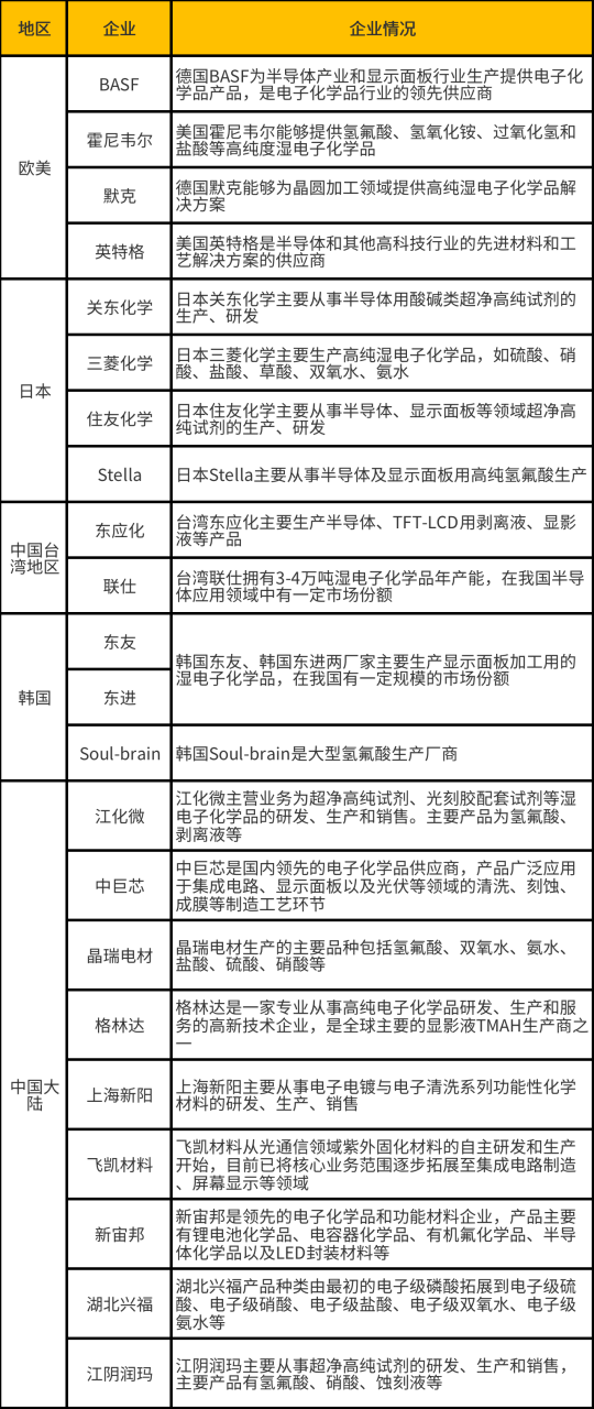 当前,全球湿化学品竞争格局,主要可分为三大块: