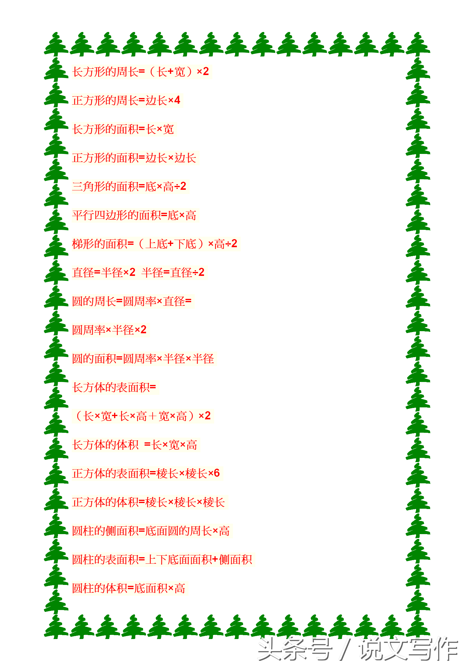 数学所有图形的面积、体积、表面积公式,给孩子留存好!
