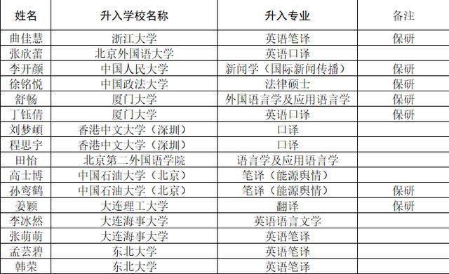 高级翻译学院2018届本科毕业生国内升学光荣榜