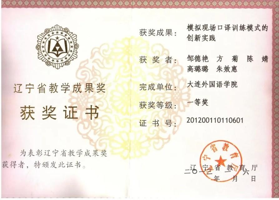 辽宁省教学成果奖一等奖