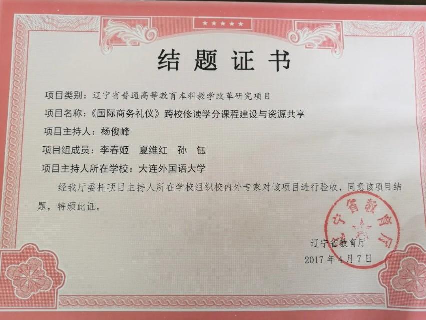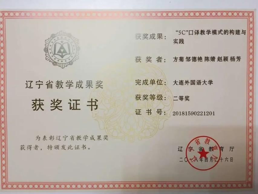 辽宁省教学成果奖二等奖