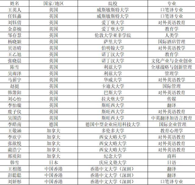 高级翻译学院2019届本科毕业生国(境)外升学光荣榜