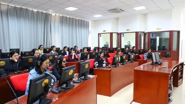 高级翻译学院学生在数字化同声传译实验室进行口译实训