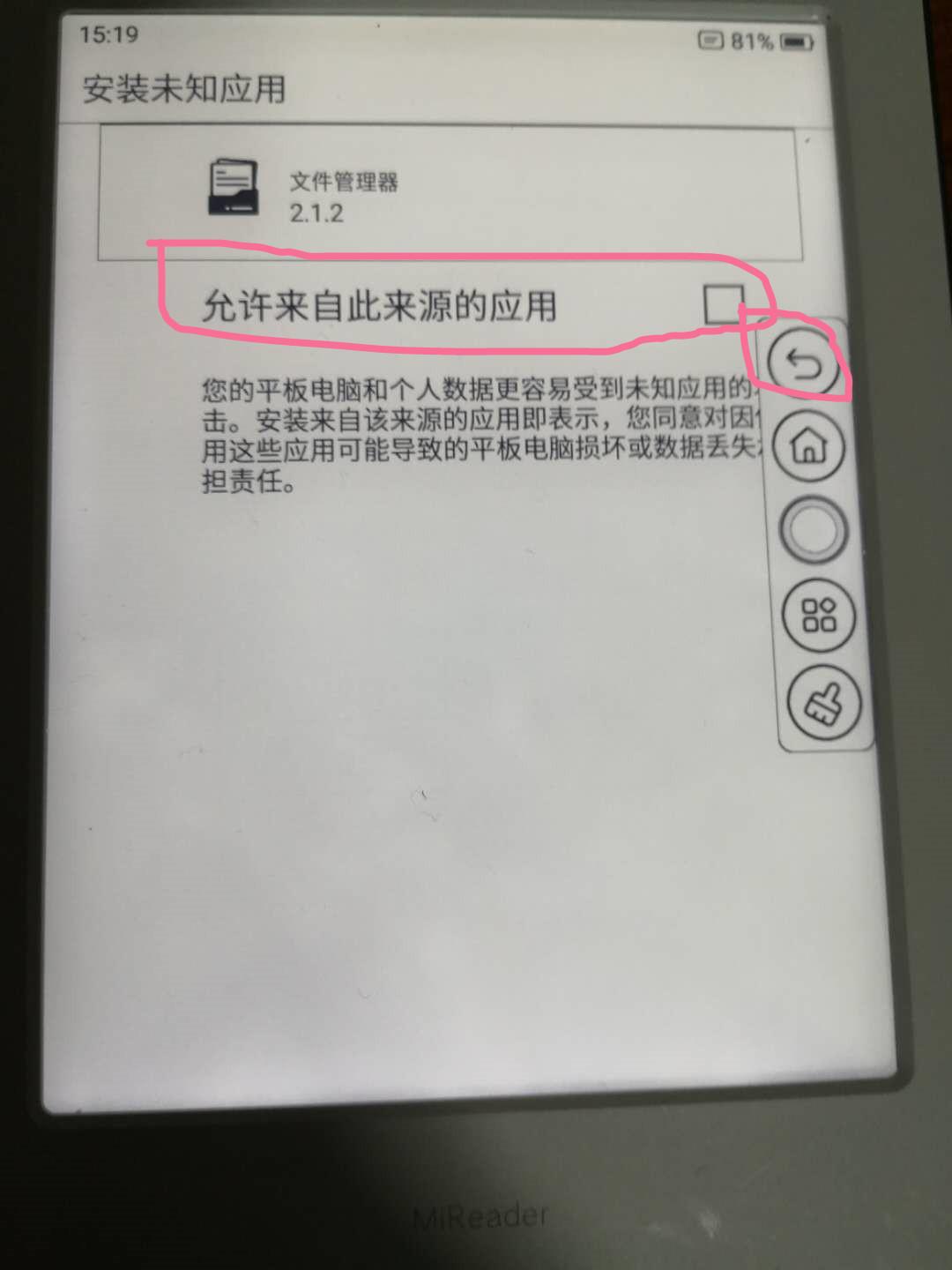 小米多看这类阅读器尽管是基于安卓环境,但出于内容消费、产品体验的考虑,也不会让你随便安装第三方APP,因此开机后会自动进入系统桌面,无法直接像手机那样安装APP。因此需要以下步骤来解决问题。
