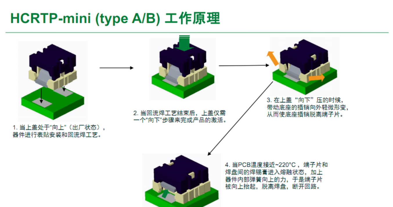 目前量产的有两款RF4515-000 /HCRTP-mini和RF4539-000 HCRTP-mini-B两个版本,两者主要区别是在连接端子弹起后,是否端子是否裸露,电性能完全相同;另外60V电压版本产品也可以提供样品并随时量产;苏州昊芯电子作为littelfuse专业代理商,一直专注于此产品的推广,有丰富的设计应用经验,欢迎新老客户交流索要样品!