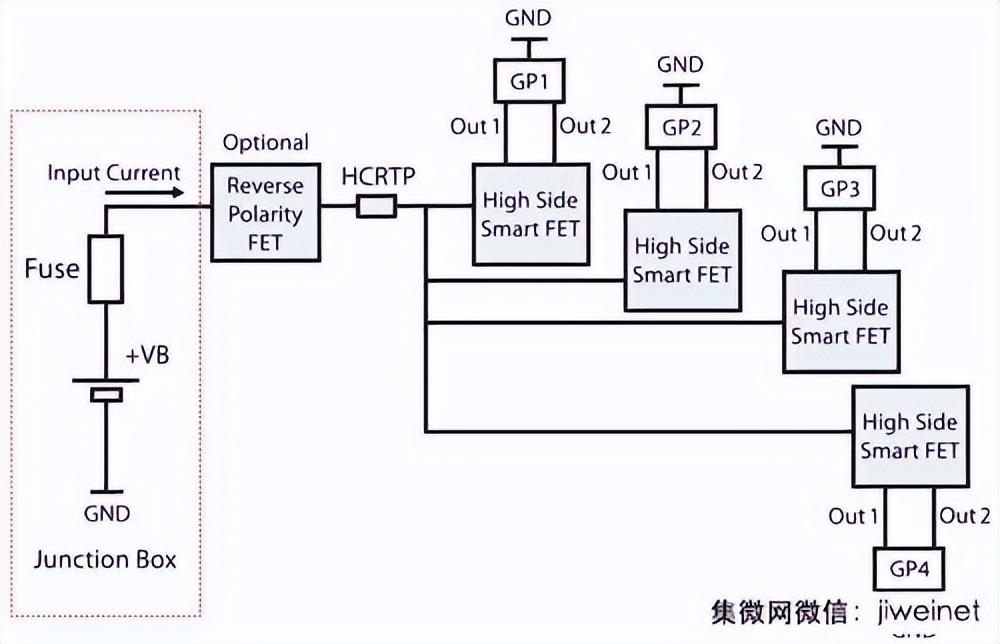 政府法规驱动 预热塞控制改良刻不容缓 严格的政府法规强制提高燃料经济和引擎性能,同时降低有害物质的排放量,上述要求带动目前先进现代引擎管理系统的发展。这些法规使得汽车工业要对柴油机直喷式引擎控制系统和预热塞控制进行改善,目前的产业发展趋势是以半导体元件,如功率场效应电晶体为中心,所打造的电子开关来取代采用叶片保险丝和继电器的传统架构。 如图所示,在四缸预热塞模组中,电子继电器塞(Electronic Relay Plug)直接与+Battery连接。在电子预热塞和铅酸电池之间没有任何继电器,使得系统更为灵敏。该方块图说明HCRTP如何放在输入连接器附近,协助在热逃逸时提供反极性FET保护,这种方法再次提供板上最后防线的保护,有助防止热能的传递。