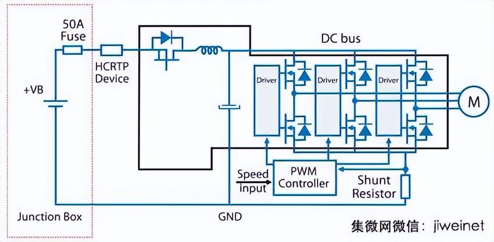 在功率达1,000W的BLDC马达中,使用HCRTPmini元件示意图