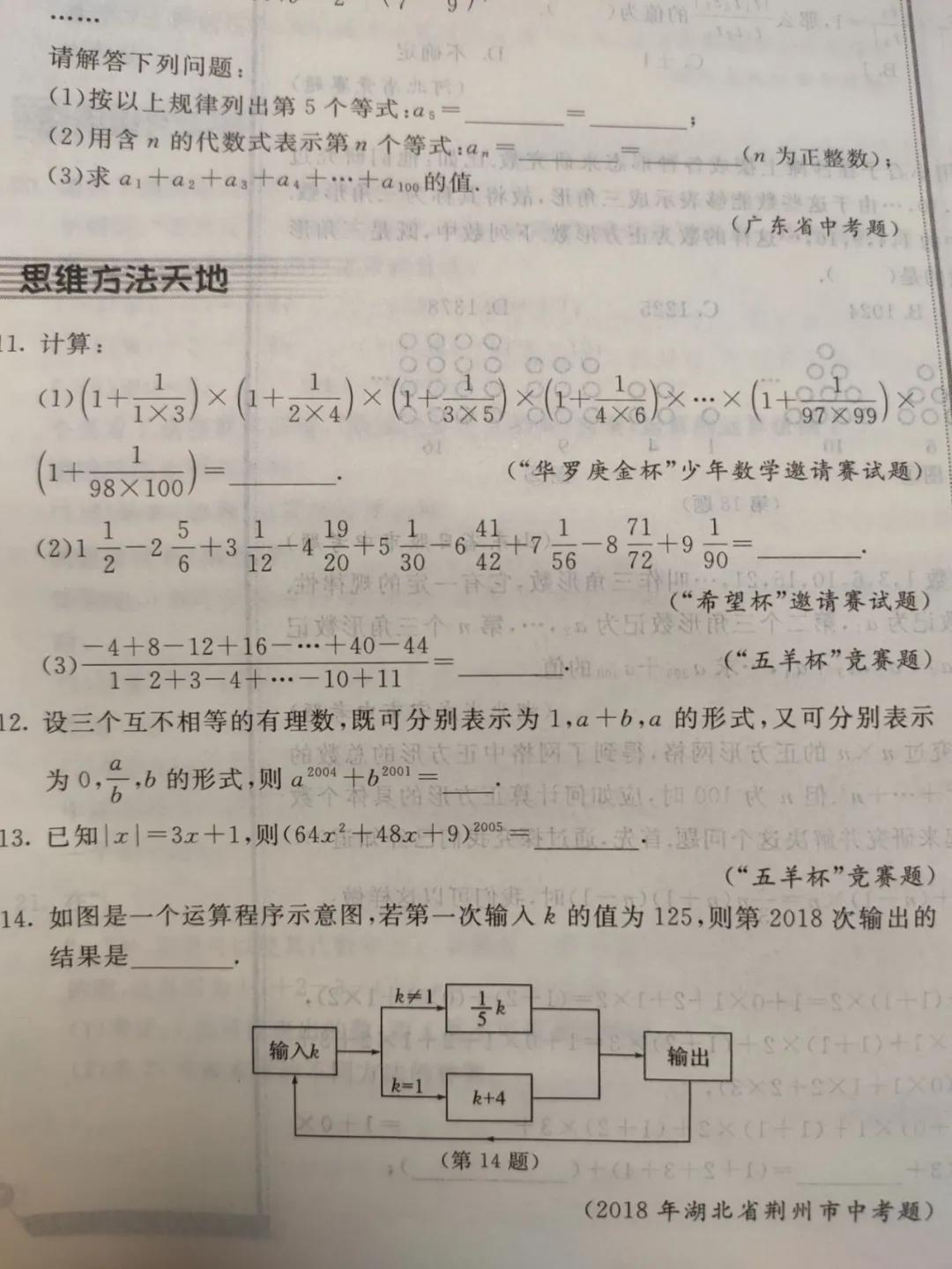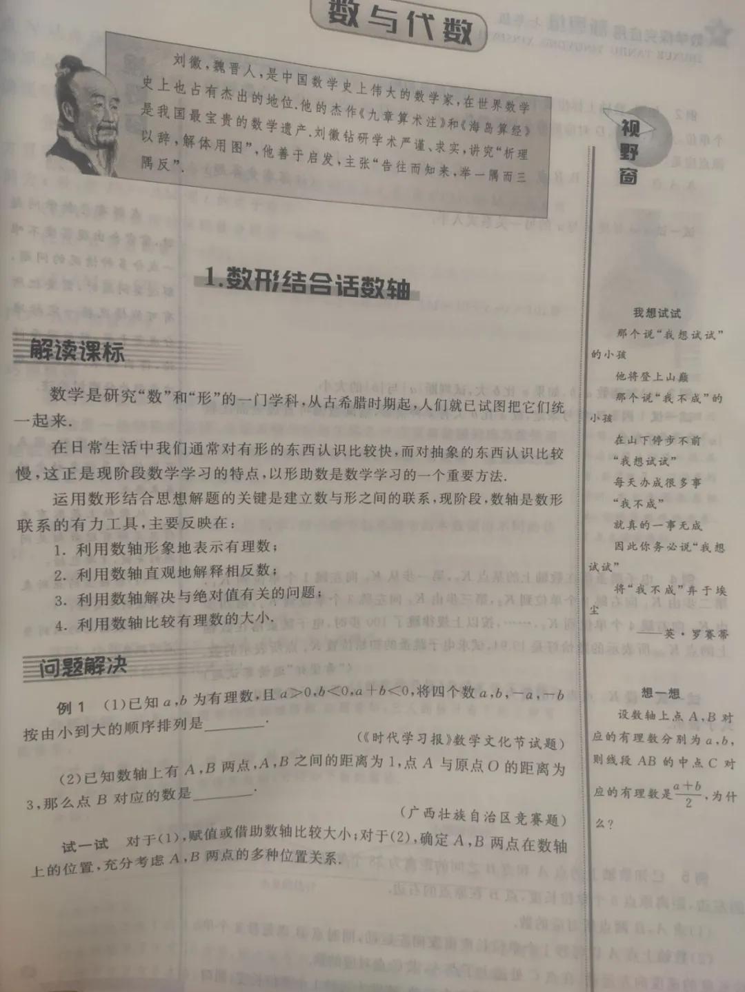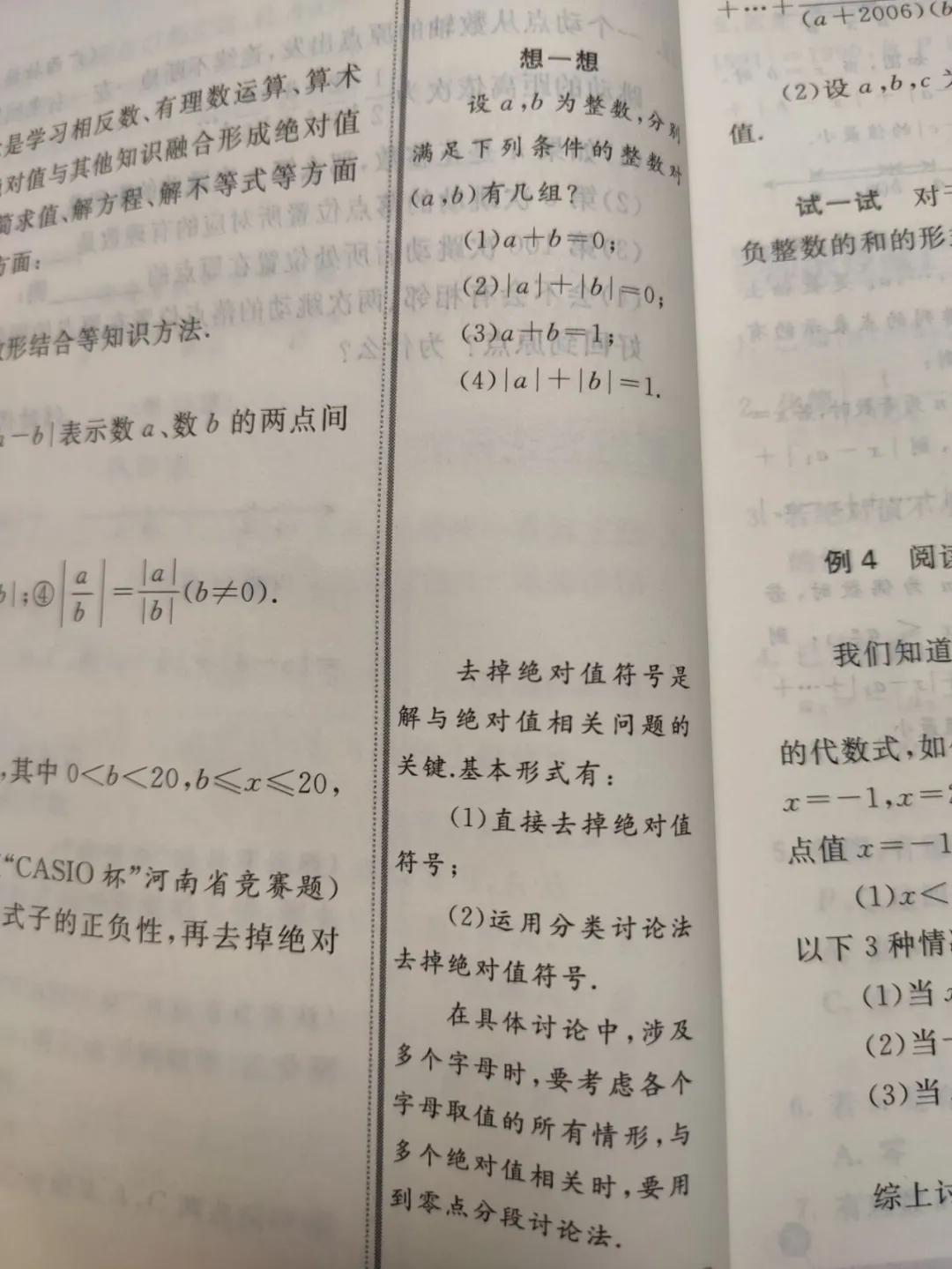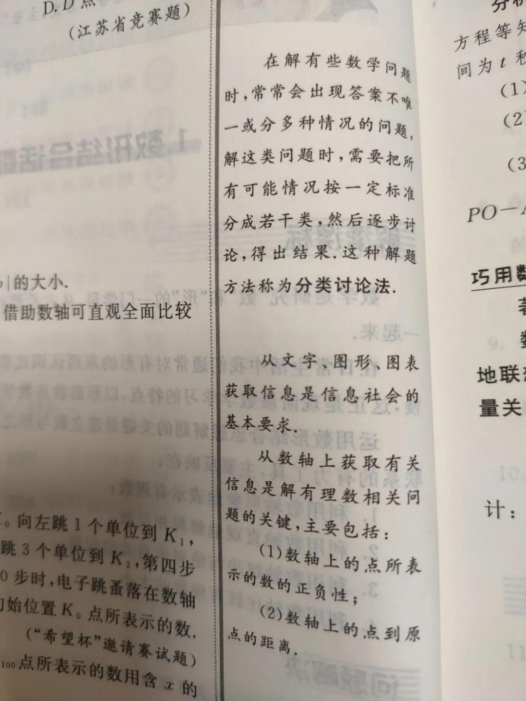 内容大致是和人教版的七年级数学教材一致,但又突出了重难点,像一开始的数轴和绝对值,在课内教材上都有涉及,但难度不够,在考试中反倒会出一些比较难的题目,这种编排就比较符合实际一些。