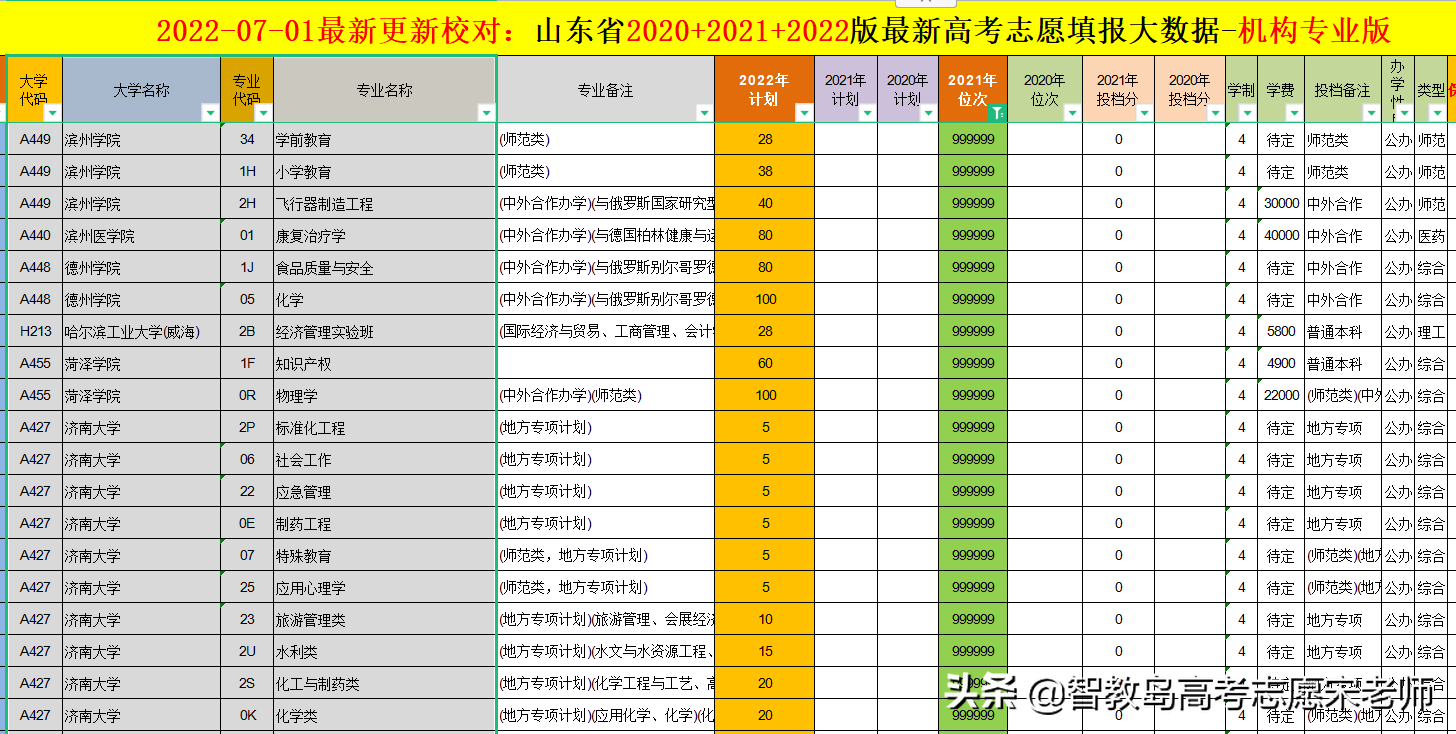 2022年山东省普通高校招生填报志愿指南,山东省内新增加252个专业名单如下: