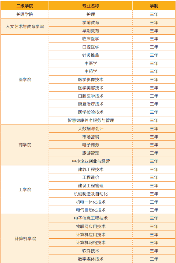 医学院— 临床医学、口腔医学、针灸推拿、中医学、中药学、口腔医学技术、医学美容技术、康复治疗技术、医学影像技术、医学检验技术、智慧健康老年服务与管理