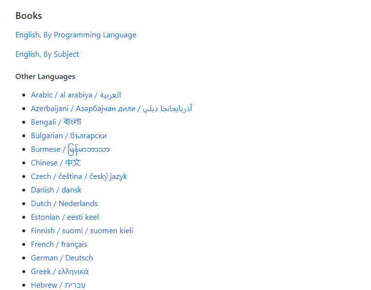免费的计算机电子书,包含英文、中文、日文等其他的语言类型。