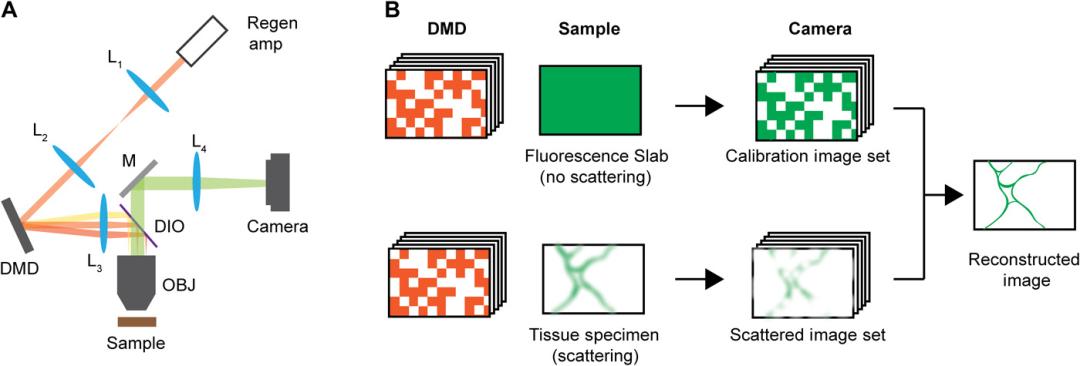 相关报道:https://mp.weixin.qq.com/s/9nV2XAHAunU6yEt72GIXEg德克萨斯大学西南医学中心的科学家与英格兰和澳大利亚的同事合作,构建并测试了一种新型光学设备,可将常用显微镜转换为多角度投影成像系统。在不移动样品的情况下实时提供多个方向的视图,并且工作速度比当前技术快 100 倍。该研究于6月28日发表在《Nature Methods》杂志上。论文链接:https://www.nature.com/articles/s41592-021-01175-7尽管 3D 成像取得了进步,但对大型 3D 组织中的所有细胞进行剖面分析仍然具有挑战性,包括存在的许多细胞类型的形态和组织。荷兰Máxima公主小儿肿瘤中心的科学家研究了一种新的成像技术和计算管道来研究 3D 组织中的数百万个细胞,揭示每个细胞的数百个特征。成像管道将可以同时标记的颜色数量从4种增加到8种,处理大量数据的时间,从多天缩短到大约两个小时。研究成果于6月3日发表《Nature Biotechnology》杂志上。论文链接:https://www.nature.com/articles/s41587-021-00926-3非线性光学显微镜已实现毫米级的体内深层组织成像。一个关键的挑战是其有限的吞吐量,厚混浊样品中发射光子的散射严重降低了相机的图像质量。基于此,MIT研究人员引入了一种新技术,称为激发模式去散射或「DEEP」,利用计算成像获得高分辨率的图像,其速度比其他使用复杂算法和机器学习的先进技术快100到1000倍。该方法可以把一个需要几个月的过程变成几天。研究成果于7月7日发表在《Science Advances》杂志上。