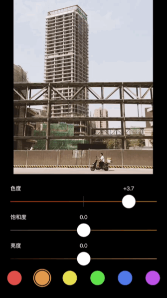 白平衡:和拍摄的白平衡一样,色温从左到右是冷蓝——暖黄,增加了一个色调,从左到右是青——品红。想看白平衡原理解释的请回顾前文:有时候好片和废片就差了这一步,白平衡功能详解|Snapseed教程11
