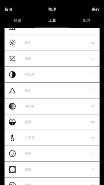 前期拍摄的功能介绍完毕,我们继续认识一下后期修图的基本设置: