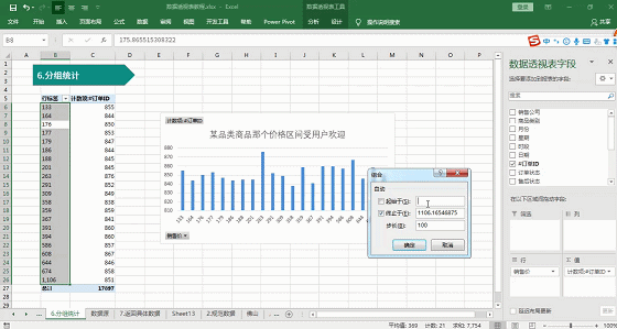如果是数值或日期 在行标签列,可以根据组合汇总进行自动的分组。【分析】【创建组合】根据步长和起点值、终点值设置。