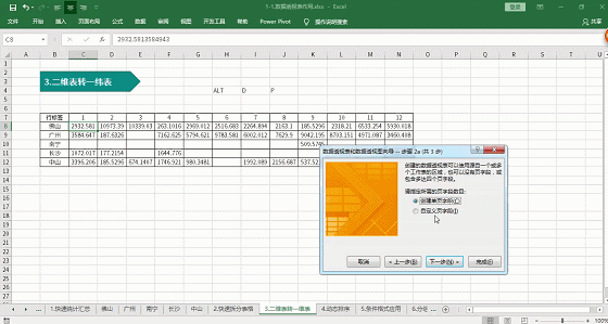 建立数据透视表后,双击最后汇总项,从而得到一维的数据源 。