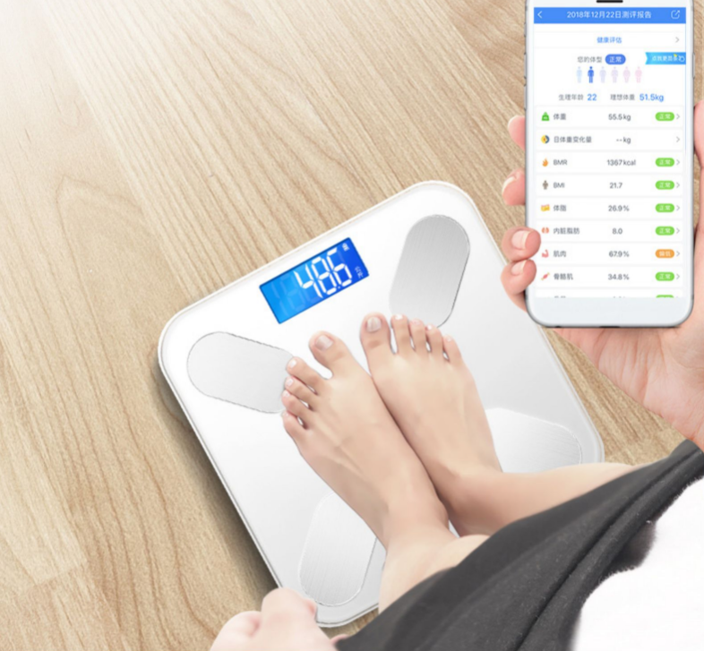 体脂秤可以在你站上去的几秒后,测量出身体的体重、脂肪率、含水量、肌肉率等 79 个数据,是重还是胖,有没有肌肉它说了算。