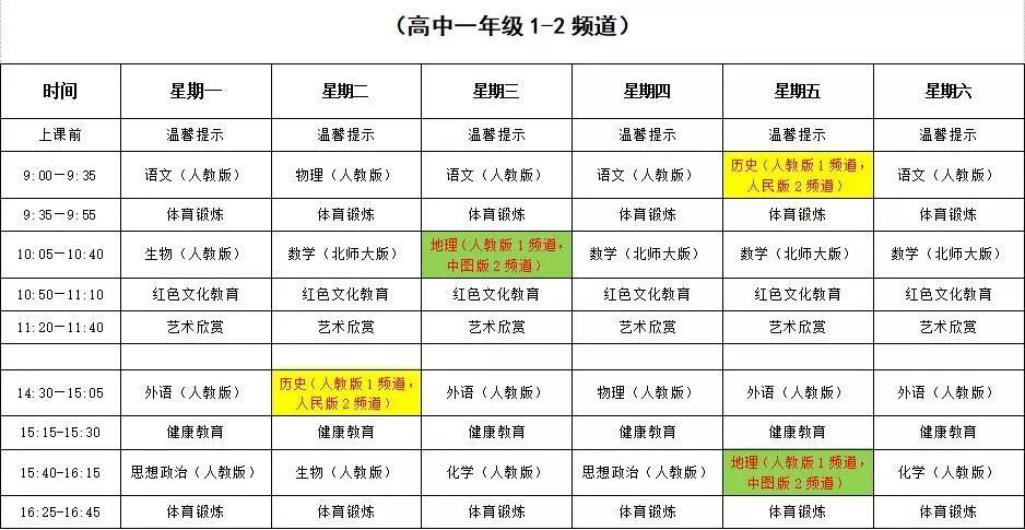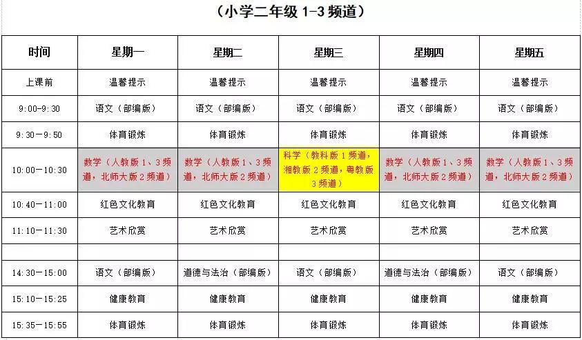 学生按照全省统一课表时间,根据领取的个人专属课表进入对应的频道进行线上学习。