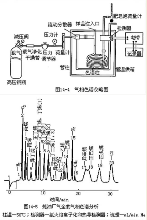 分析原理: 样品中各组分在流动相和固定相之间,由于分配系数不同而分离