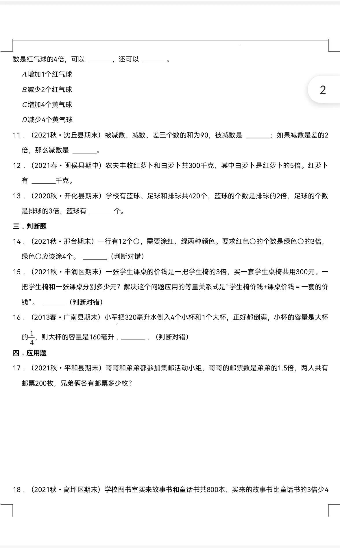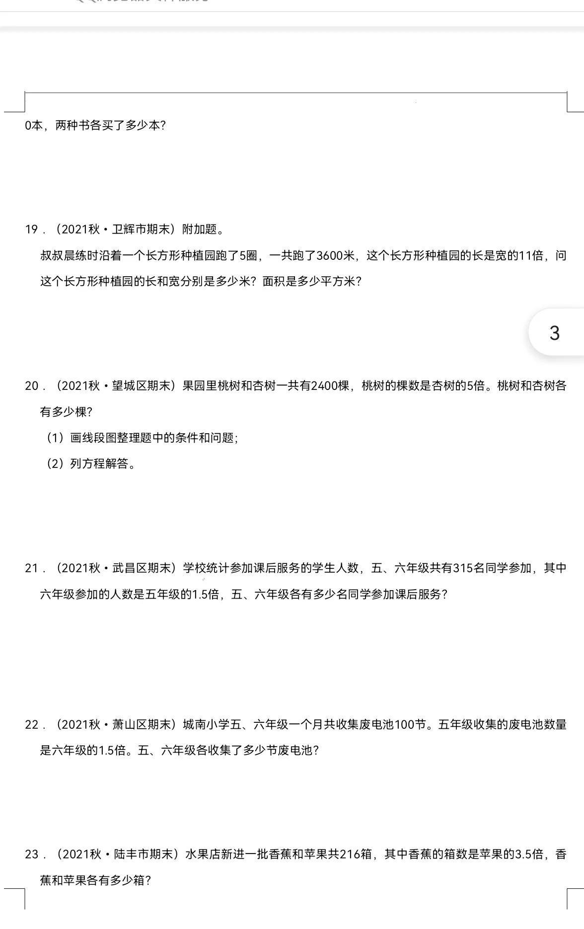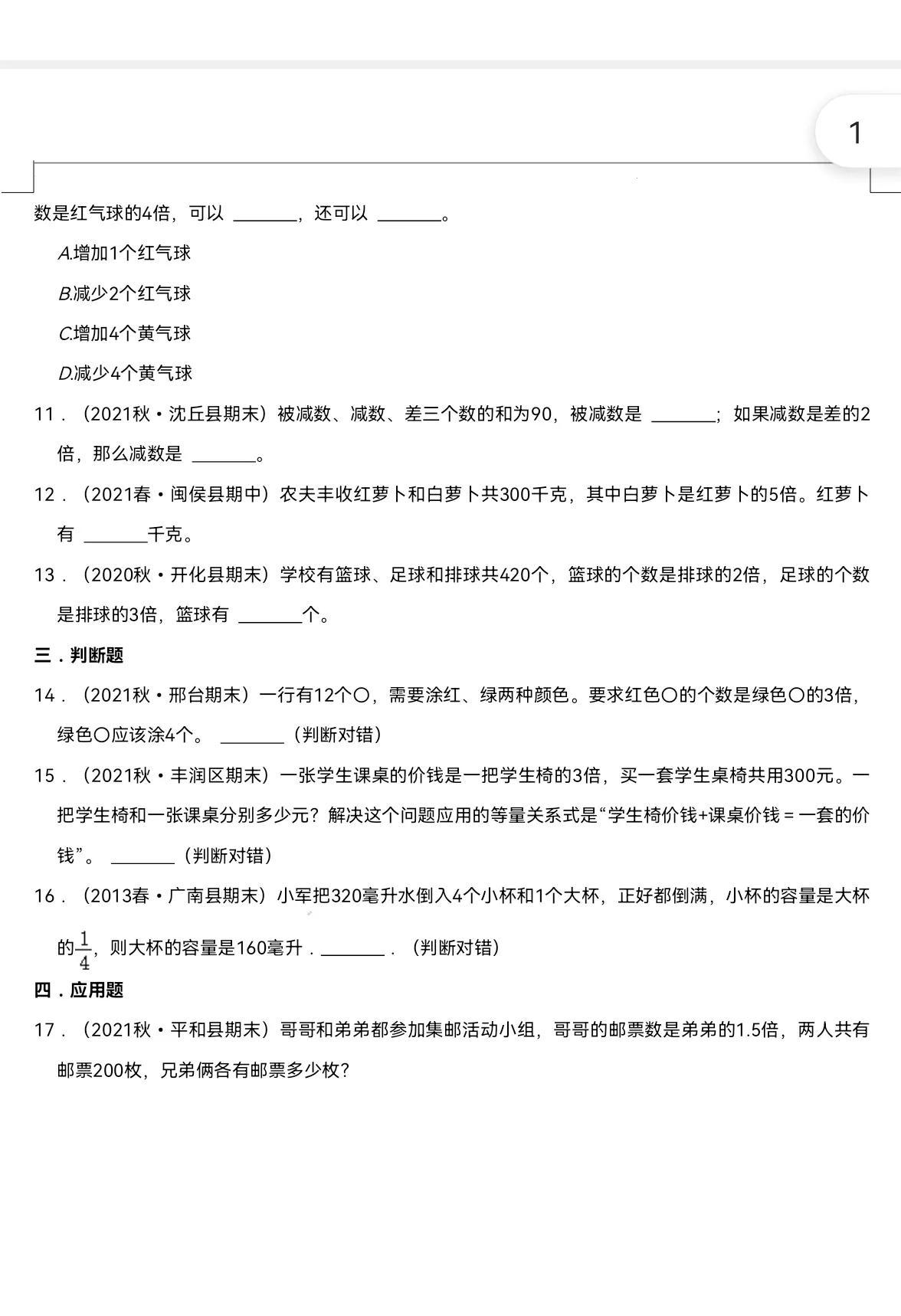 数学小升初典型应用题真题汇编 可以提供电子版和答案 和倍问题