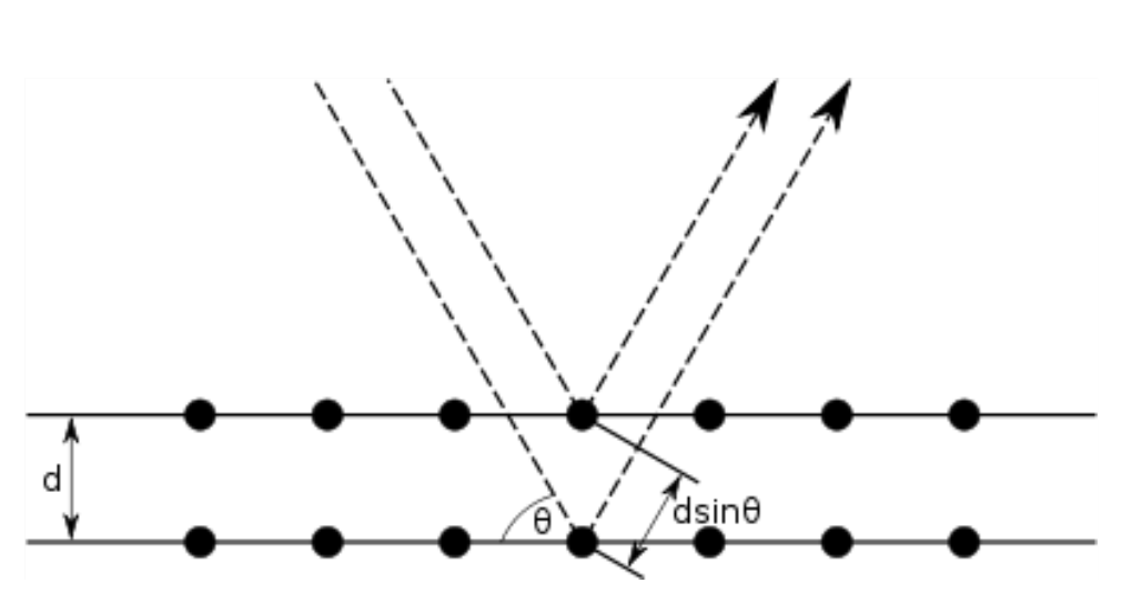 根据玻恩的说法,电子波以类似于布拉格衍射的方式从平行晶体表面散射开。在布拉格衍射中,入射到晶体表面的X射线在不同平行晶体层上反射时会产生光程差: