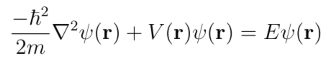 其中m是粒子的质量,ħ是普朗克常数,V(r)是势场,E是粒子的总能量。请注意,如果加上与时间相关的相位因子exp(-iωt),波函数写为: