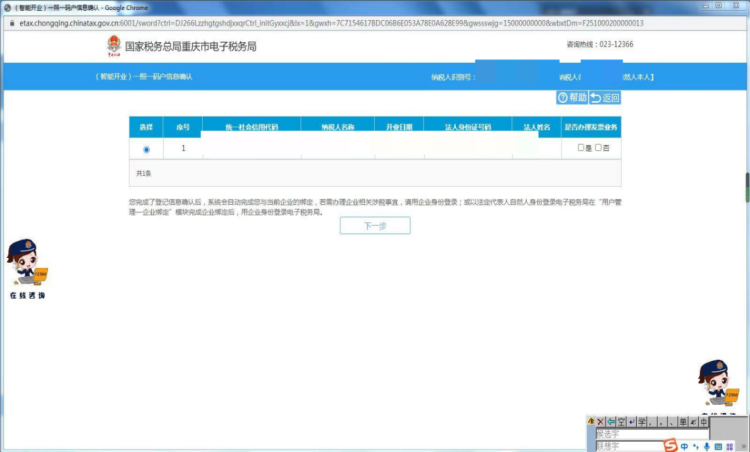 第二步:选择需要办理的纳税人,勾选【是否办理发票业务】,然后点击【下一步】。