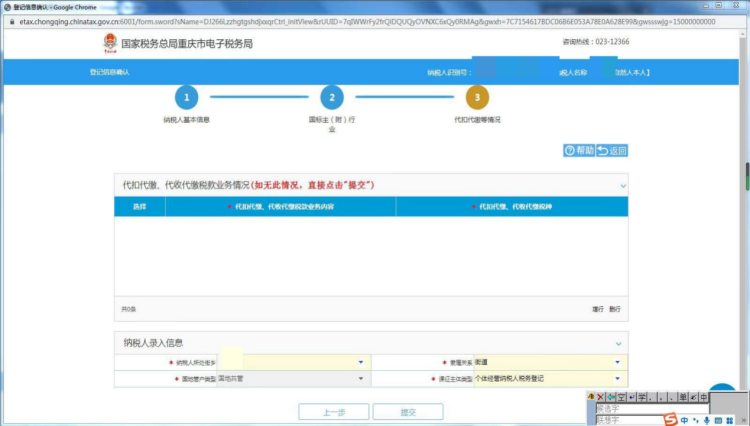 第三步:系统会自动带入大部分数据,您只需核对后填写少部分必填信息即可,然后点击【提交】。