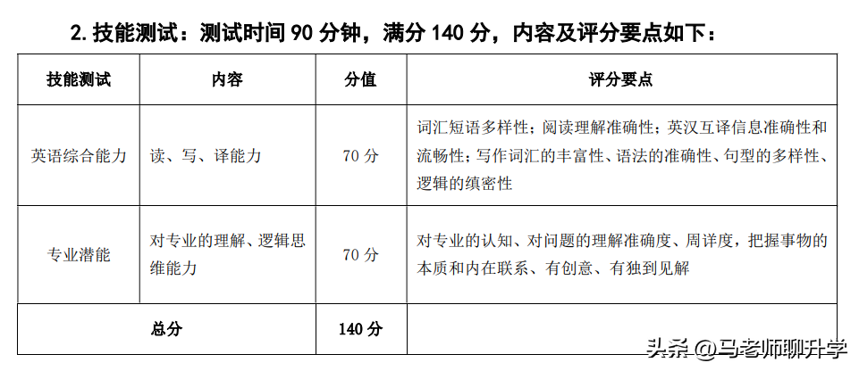 (2)考核内容:主要考查学生总总分150分,其中知识面(综合素质)35分,学习能力35分,理解能力35分,专业发展潜能35分,高中综合素质评价信息10分