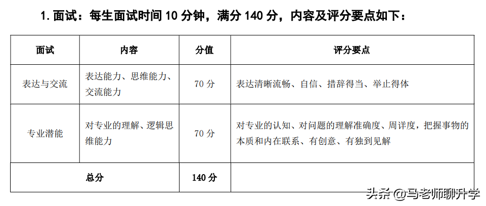 自主测试总分为150分,其中综合素质评价满分赋10分,面试满分赋140分。
