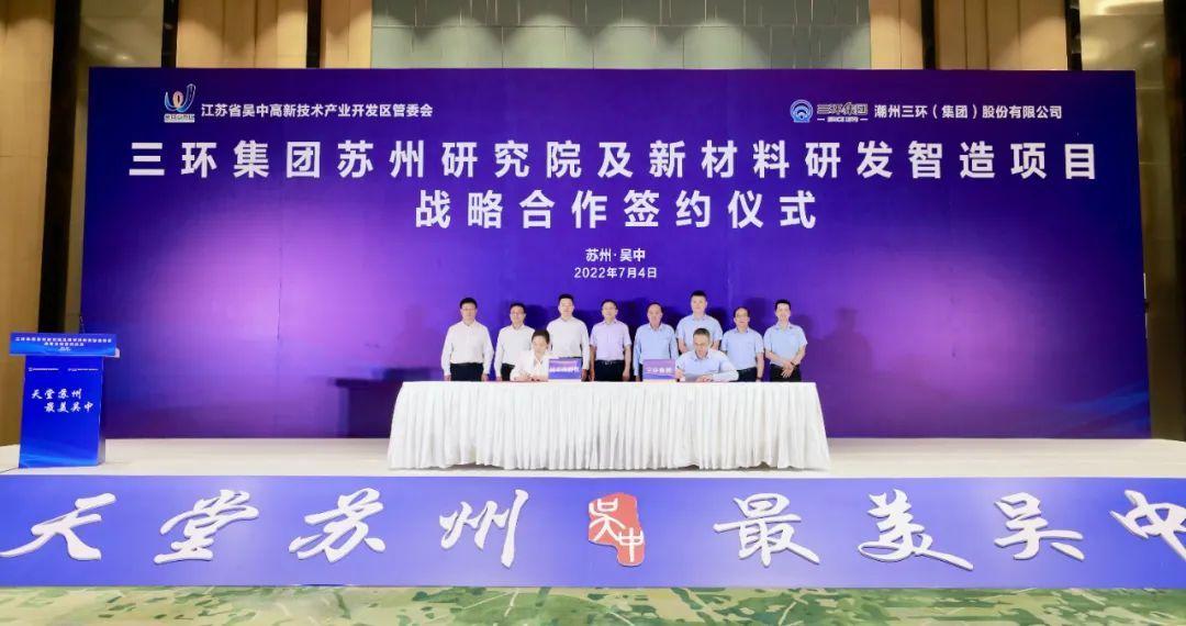 7月4日,吴中区举行三环集团苏州研究院及新材料研发智造项目战略合作签约仪式。