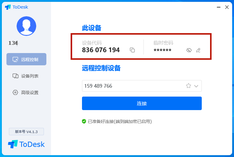 在成功远控连接第一次之后,就可以绑定设备,下一次发起远控的时候就不用再重新输入双码。