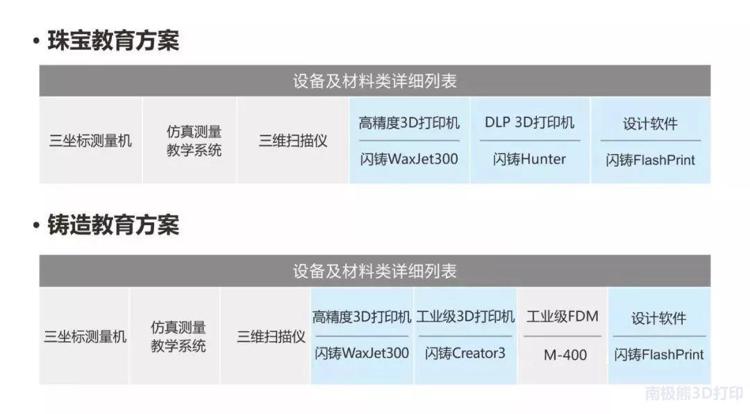 针对高校专业教学以及科研等,闪铸也推出了相应的教育解决方案:专业的设计软件+工业级/专业级3D打印机+相应方案。