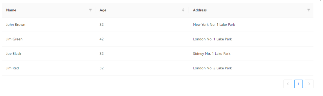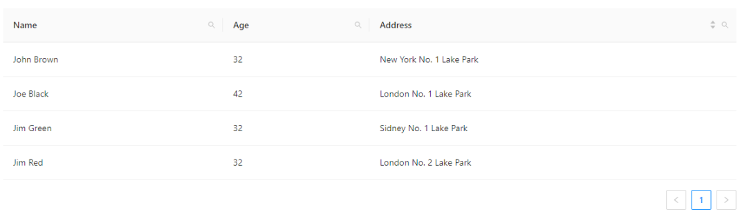 如果需要支持表格中数据的排序、搜索、筛选功能,那么就需要在表头列数据位置增加对应的功能。表格中的多种操作功能都可以搭配使用,只要根据实际的业务需求增减表格的操作即可。