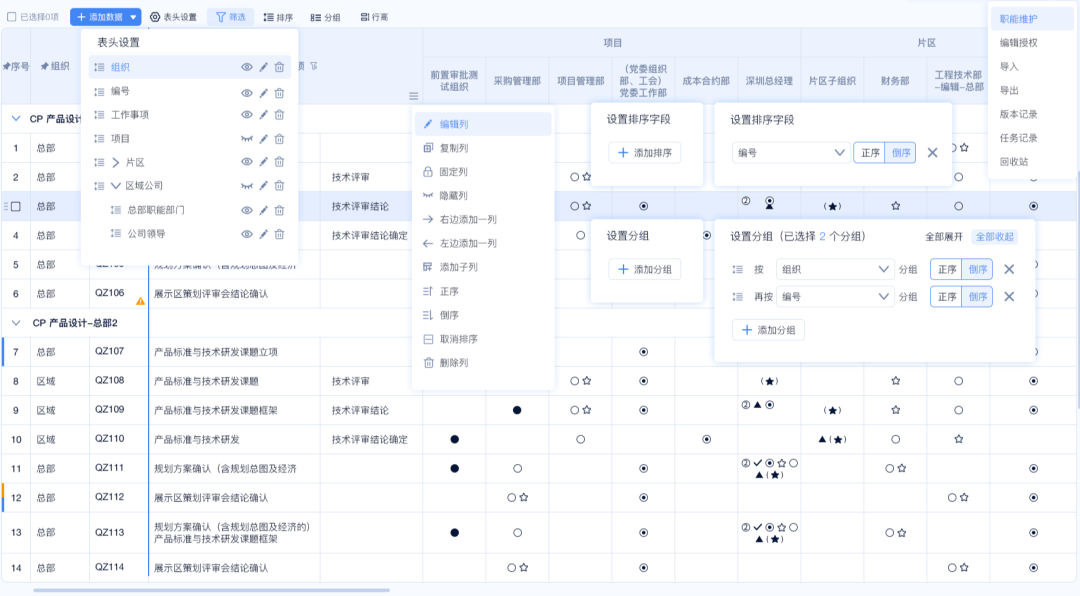 除了简单的行数据增减之外,表格中还可以支持多层级的数据增减功能,并且可以实现不同层级之间的排序功能,对于复杂场景的业务也能满足。