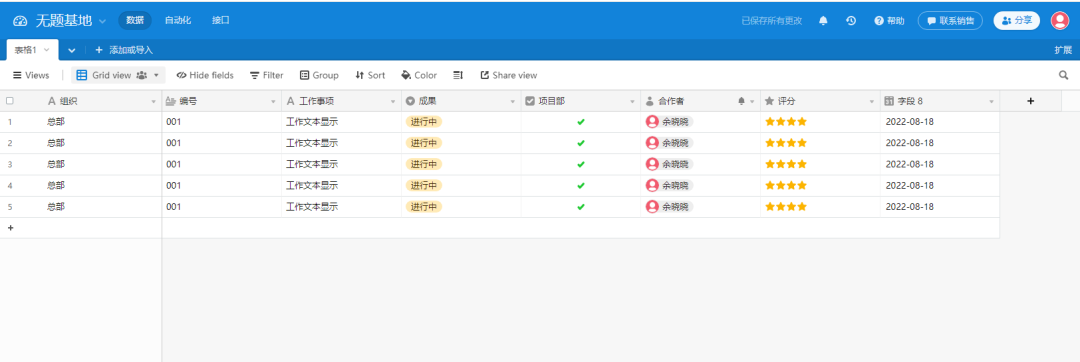 扩展型表格:支持表格行数据和列数据的自定义增减。