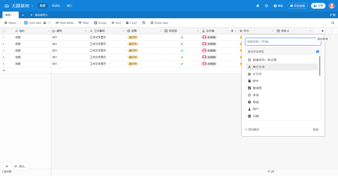 表格中的列数据也可以通过自定义添加,并且可以支持多种数据类型,下图中的案例是满足列数据和行数据都可以添加的场景,并且数据可支持多种形式,不过这样的表格组件相对于比较复杂,开发也比较有难度,小型需求场景也比较少运用到,一般会作为主要的模块设计。
