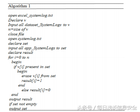 一旦我有了每个应用程序的系统调用日志信息,我就可以开始创建数据集了。由系统调用信息组成的文件是这样创建的:对于每个应用程序来说,系统调用的存在或缺失是由1/0表示的。使用下图中提到的算法,我可以将上述过程自动化。这个算法的复杂度是O(n),其中n是字符的数目。