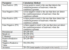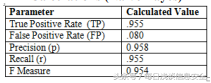 在这些算法的数据集实现后,我就可以计算出相应的准确率(Precision)、召回率(Recall)、F值(F-Measure)等。下表显示了计算所有值的方法。