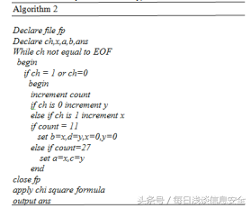 在创建了数据集之后,为了提高正确识别实例的准确性,我通过使用卡方检验算法来筛选第一步提取的系统调用日志,下图清楚地说明了我用来实现卡方检验过滤机制的算法。