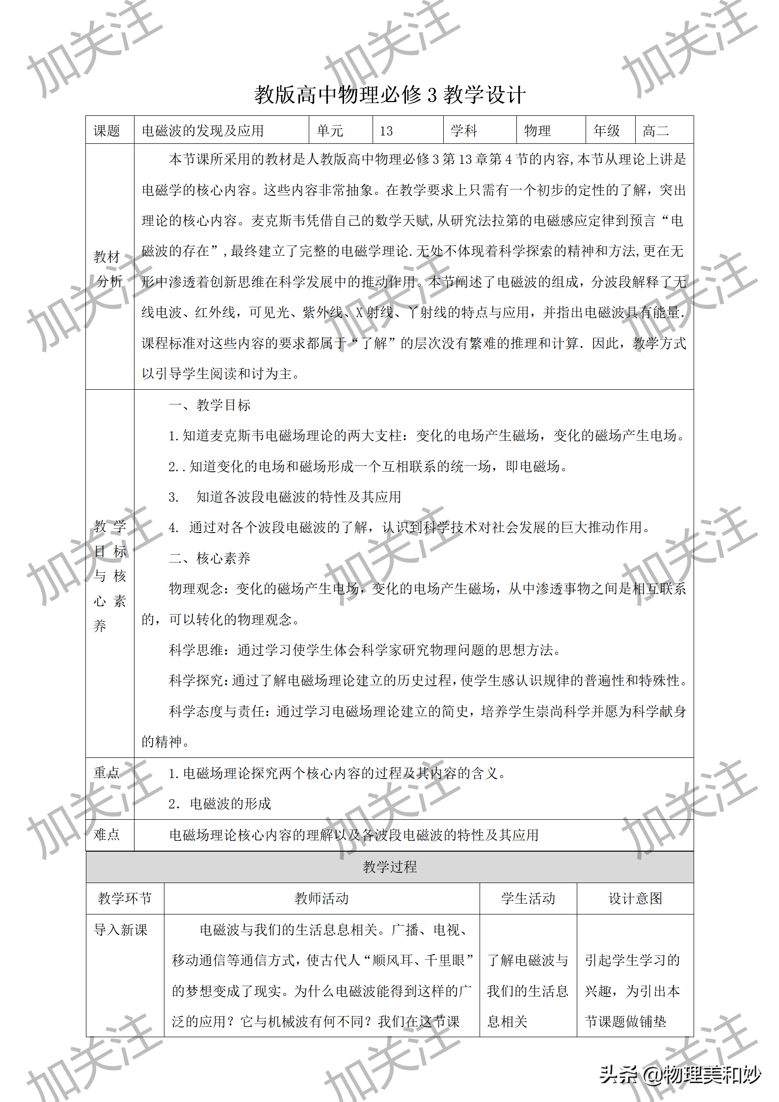新教材 高中物理 优质教案 必修三 133《电磁波的发现及应用》