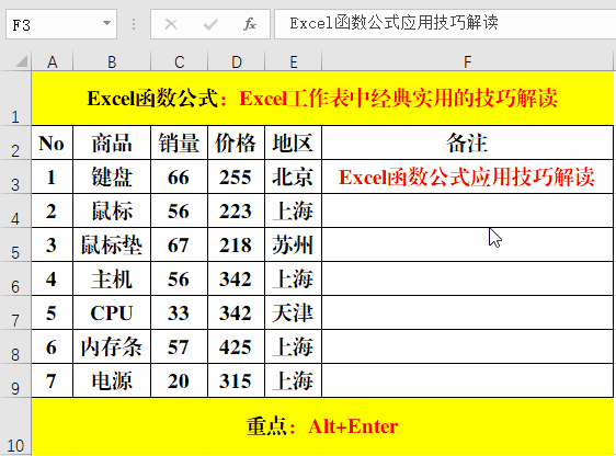 此方法主要应用于单元格内容较多或者需要隔行显示的情景,记住哦Alt+Enter。