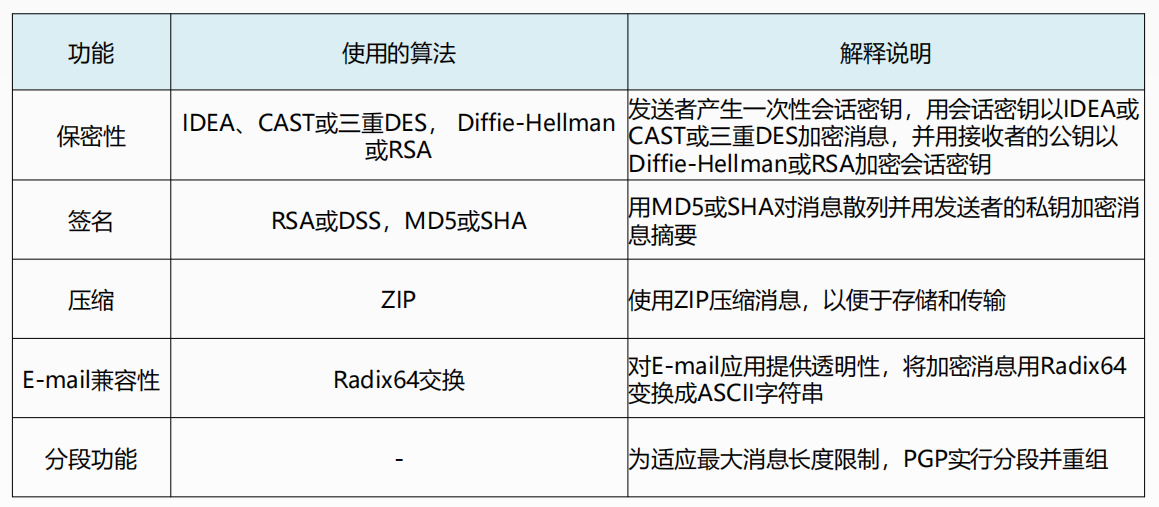 PGP 应用了多种密码技术,其中密钥管理算法选用 RSA、数据加密算法 IDEA、完整性检测和数字签名算法,采用了 MD5 和 RSA以及随机数生成器 ,PGP 将这些密码技术有机集成在一起,利用对称和非对称加密算法的各自优点,实现了一个比较完善的密码系统。