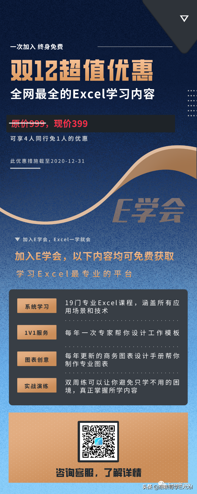 目前,限时优惠正在进行,在原价999元的基础上,立减600元。只要399元,就可以成为Excel高手。